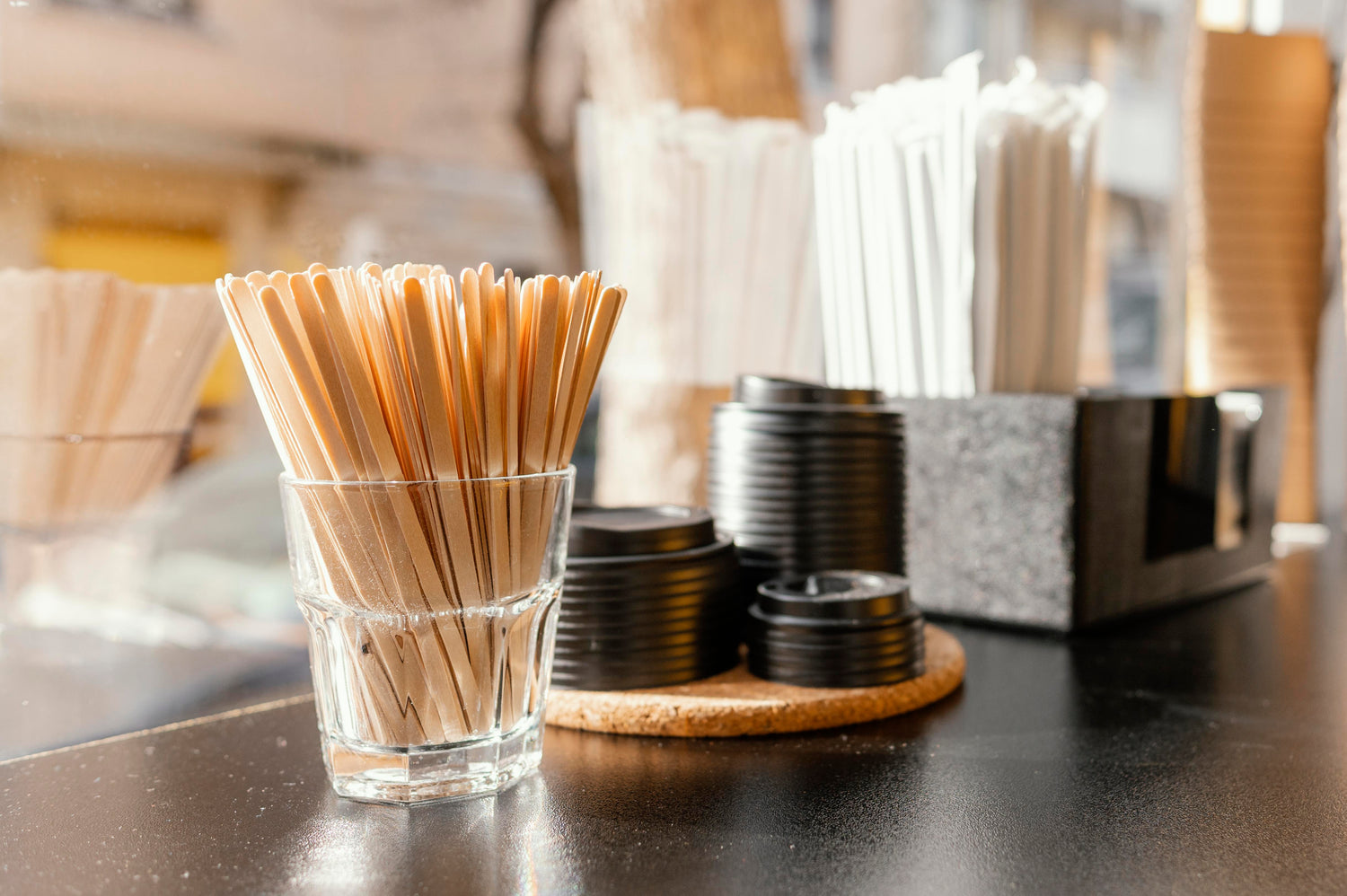 Many items (such as bagasse plates, kraft sleeves, and paper products) are made from eco-friendly or recyclable materials.